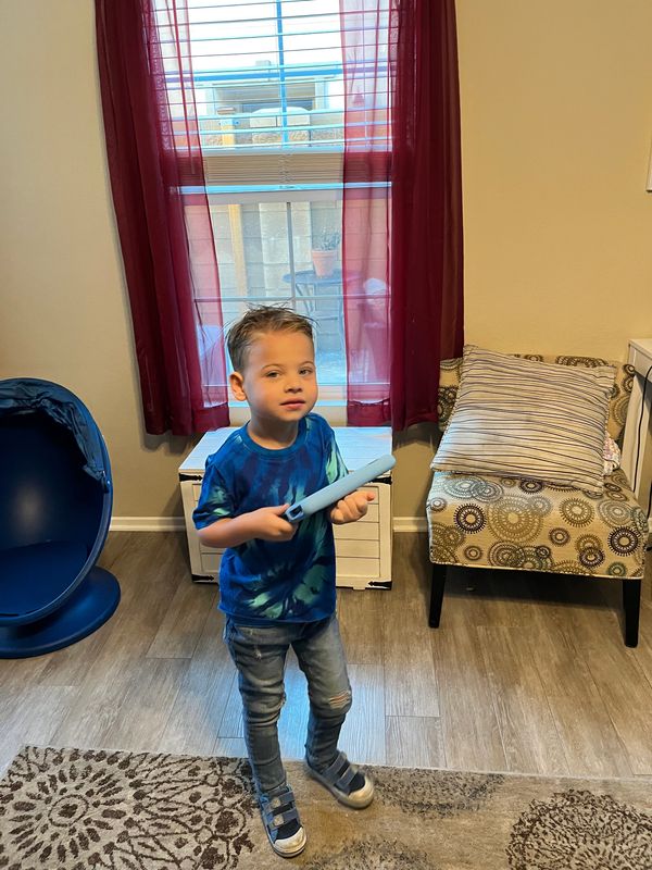 Paxton receives speech therapy from Tiny Babbles Speech Therapy. This is a clip of a session where you can see how hard he has to work to form mouth movements to communicate. It also highlights how he uses an AAC device to communicate.